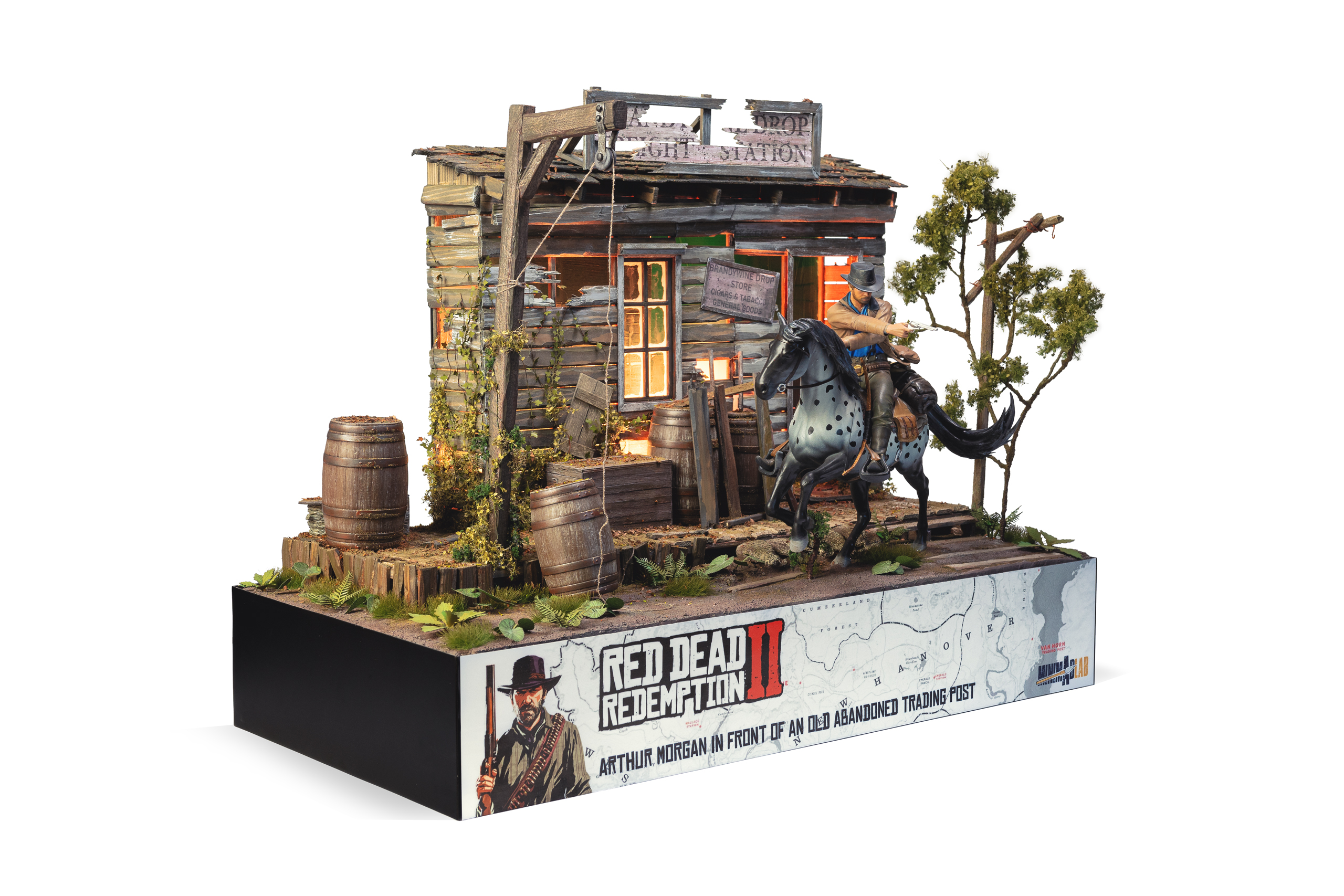 Arthur Morgan in front of an old abandoned trading post – Red Dead Redemption 2 diorama build.