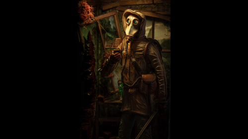 Diorama na motivy herní série S.T.A.L.K.E.R - Shadow of Chernobyl. Ručně modelovaná a barvená figurka stalkera nováčka z polymerové hmoty, hledajícího vzácné artefakty, zasazená do prostředí nelítostné radioaktivní černobylské zóny. Stalker je vyzbrojen starou dvouhlavňovou brokovnicí držící v levé ruce a nožem připnutým k pravé botě. Ochranu před radiací zajišťuje artefakt ""Krystal"" připnutý za opaskem a obyčejná plynová maska s brašnou přehozenou přes rameno. Dále je stalker vybaven batohem se spacákem a základním detektorem anomálií v pravé ruce.