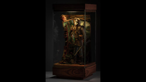 Diorama je uložena do vitrínky z dubového dřeva se sklem o síle čtyři milimetry. Vitrínka má v horní části integrované LED osvětlení které dodává celému dílu tu správnou atmosféru.