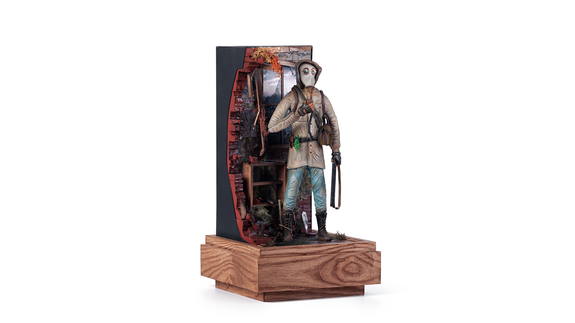 Diorama na motivy herní série S.T.A.L.K.E.R - Shadow of Chernobyl. Ručně modelovaná a barvená figurka stalkera nováčka z polymerové hmoty, hledajícího vzácné artefakty, zasazená do prostředí nelítostné radioaktivní černobylské zóny. Stalker je vyzbrojen starou dvouhlavňovou brokovnicí držící v levé ruce a nožem připnutým k pravé botě. Ochranu před radiací zajišťuje artefakt ""Krystal"" připnutý za opaskem a obyčejná plynová maska s brašnou přehozenou přes rameno. Dále je stalker vybaven batohem se spacákem a základním detektorem anomálií v pravé ruce.